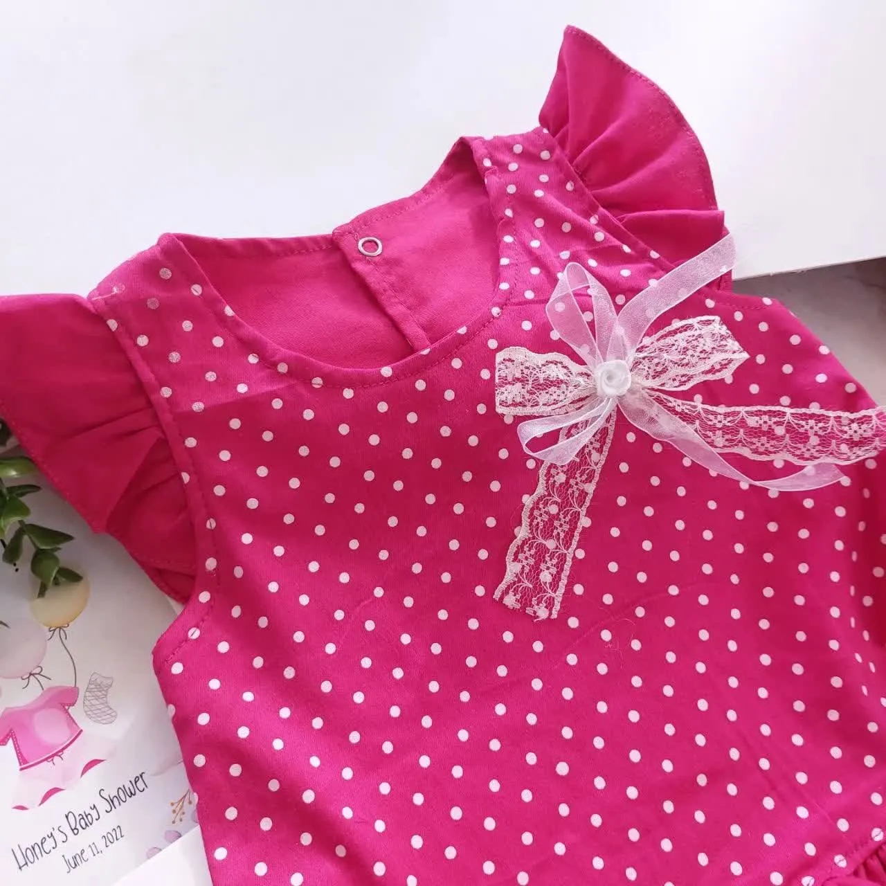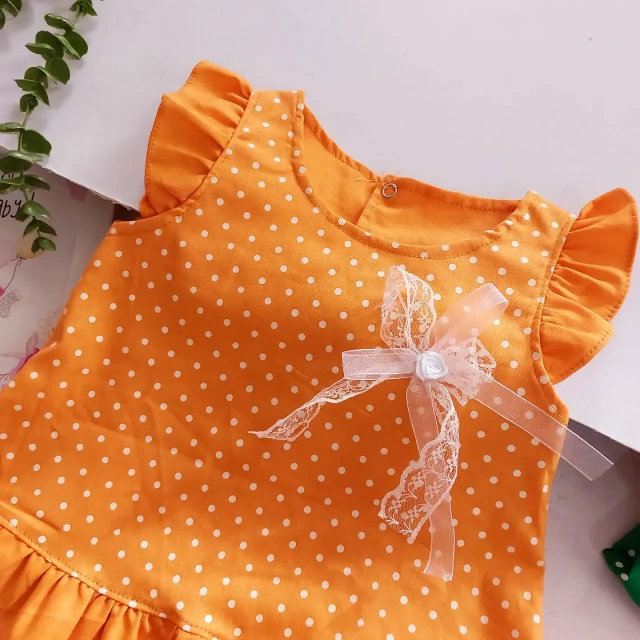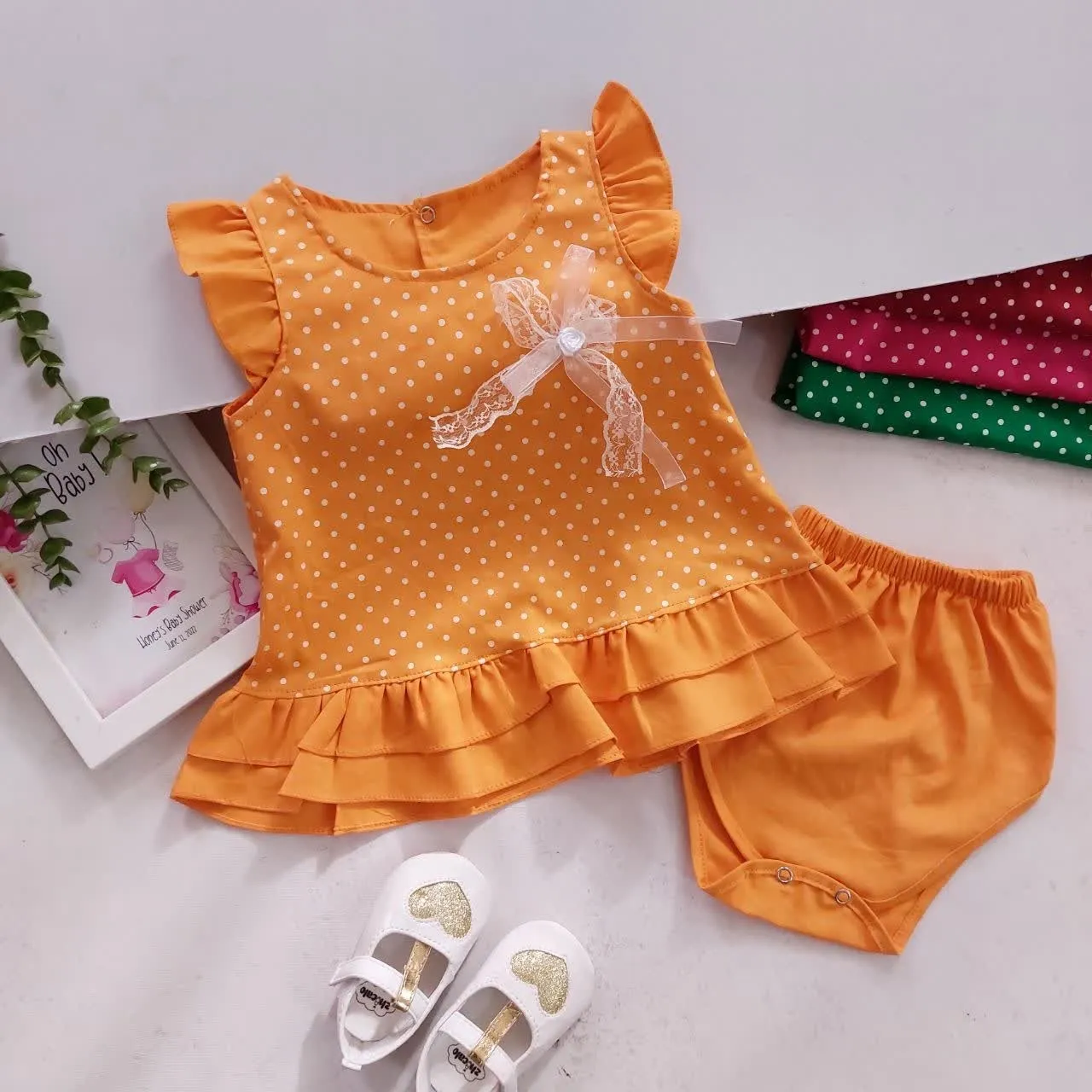 **سارافون و شورت نخی دخترانه طرح خال خالی | مناسب 1 تا 3 سال**