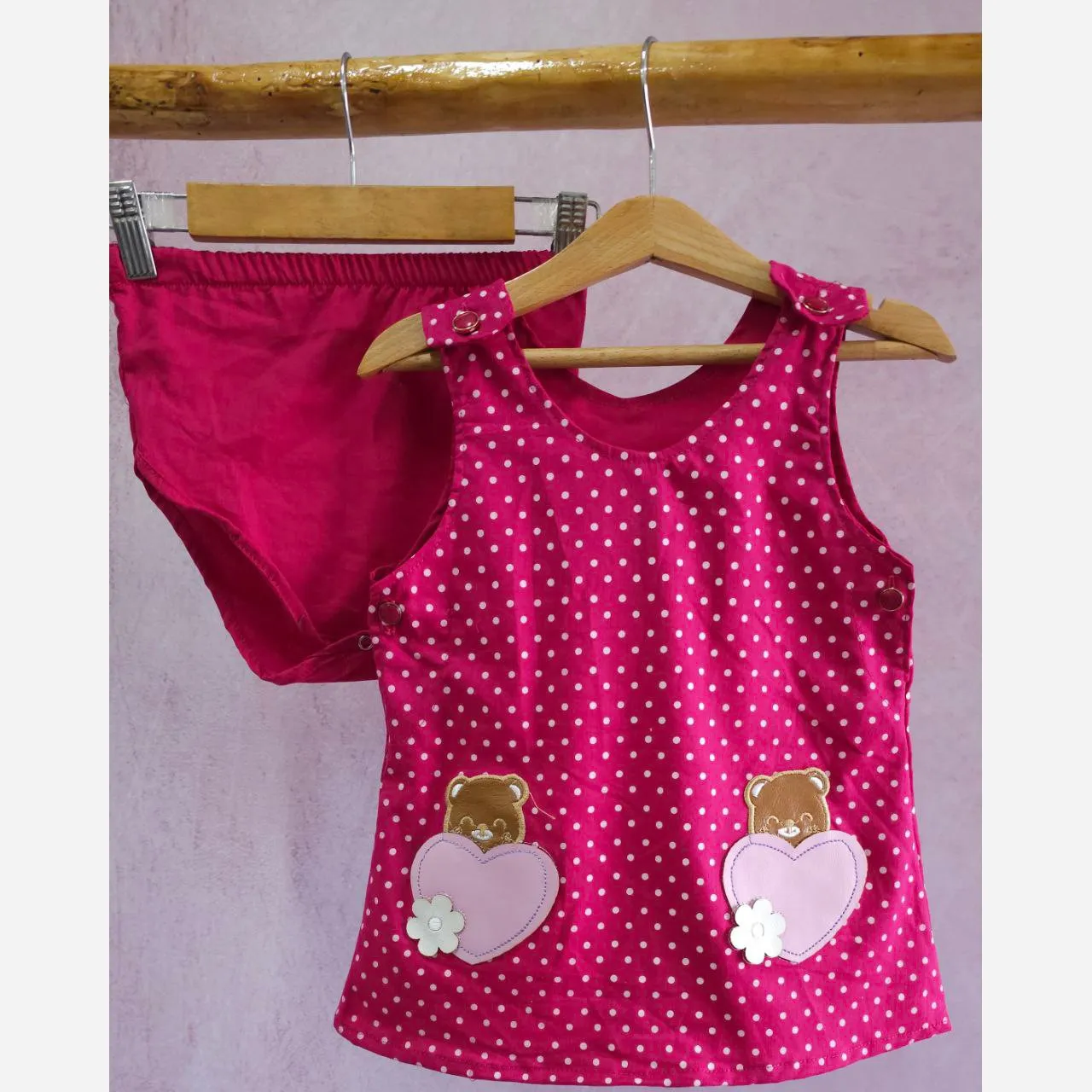 سارافون شورت نخی خرس و قلب چهار رنگ مناسب 1 تا 3 سال