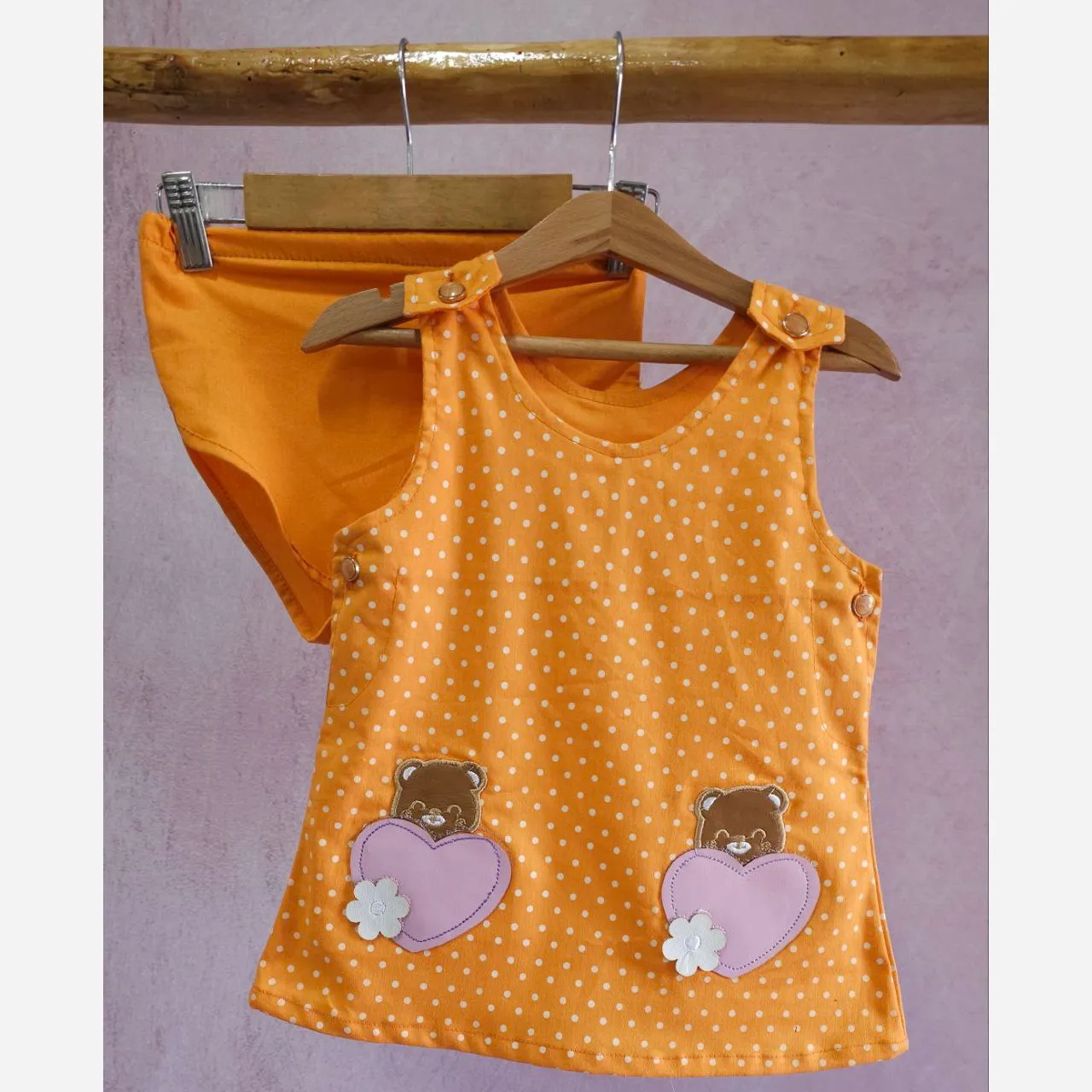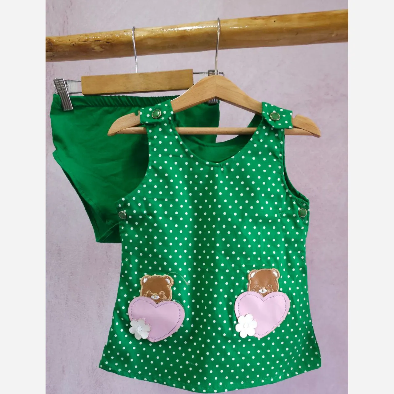 **سارافون شورت نخی خرس و قلب دخترانه | خنک و لطیف | مناسب 1 تا 3 سال**